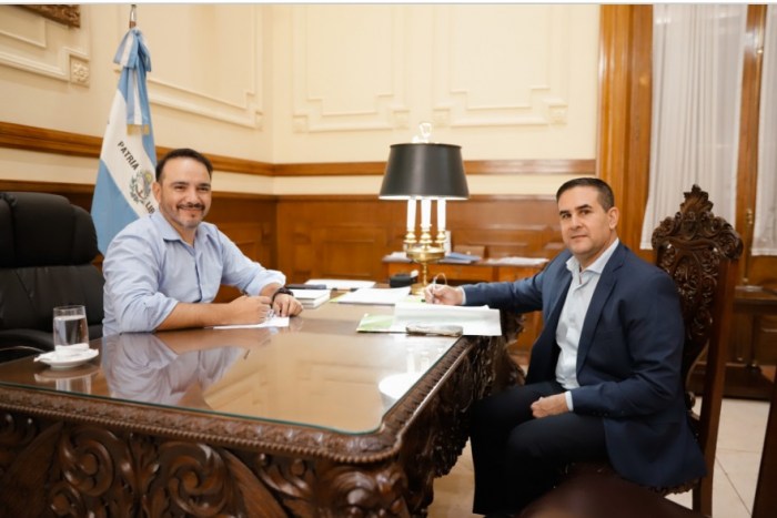 El gobernador Juan Pablo Valdés recibió en su despacho al ministro de Desarrollo Social, José Irigoyen. Allí, dialogaron sobre “la importancia de seguir fortaleciendo políticas públicas orientadas al crecimiento económico y la generación de más oportunidades para nuestra gente”, según expresó el mandatario en redes sociales.